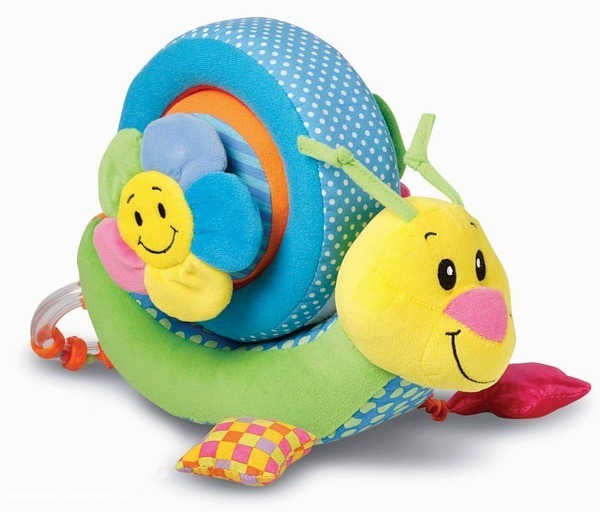 Мне Улитка сначала очень понравилась. В голове у нее погремушка, на лапках шуршалка и пищалка, домик разбирается, на липучках. Вообщем идея хорошая, но качество плохое. К ней все липнет, подушечки порвались. Не советую.