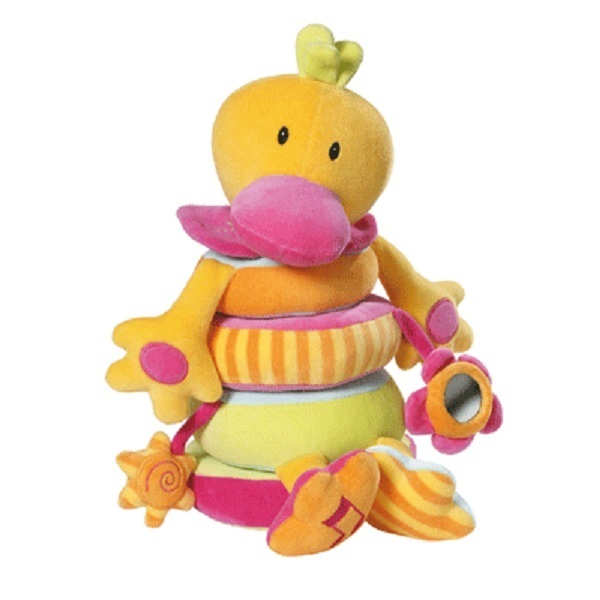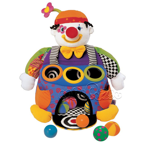 Это наш Клепа, живет в кроватке. Сначала дочка его просто разглядывала. Произносила «У-У», потом трогала, особенно привлекает нос, который пищит. В 6 мес. научилась засовывать мячики и всякие мелкие игрушки в отверстия.