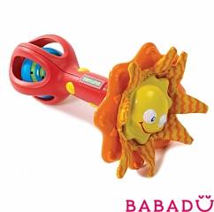 ааааааа.у меня похожая есть погремуха. только вместо подсолнуха цветочек. но мы пока безразличны к ней(