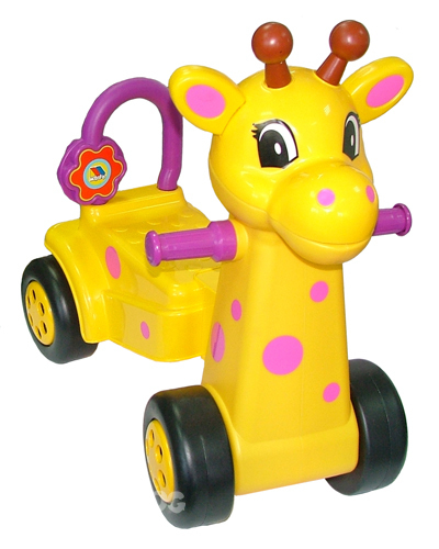 каталка г-о. у нас динозаврик. Глаза и прочее из бумаги, малыш в 1.5 все оторвал. Ножкам неудобно, попадают в колеса, поэтому колеса лучше закрытые. Ручки быстро открутились.