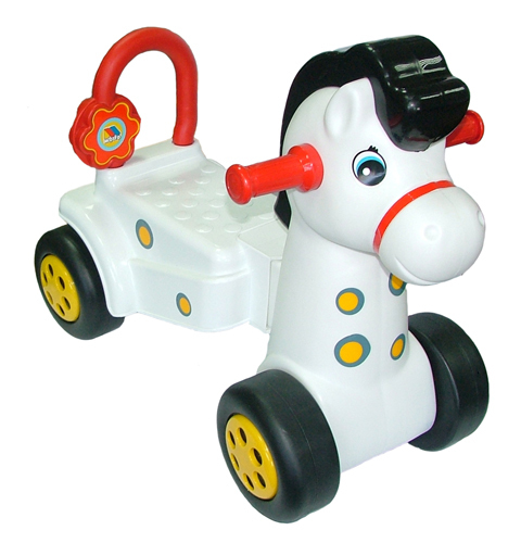 купили лошадку) прикольная) тока ножки не достают до пола пока что, но малышке нравится толкать ее)