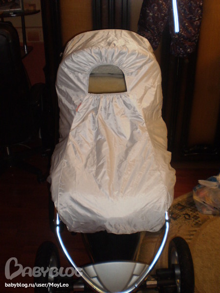 У нас тоже такая защита, только на коляске teutonia )))) Действительно очень удобна, в теплое время защищает от дождя, а в холода от ветра и мокрого снега. Занимает мало места, быстро сохнет, легко одевается и снимается, очень довольны!!! Плюс еще множество расцветок на любой вкус! Кстати сейчас уже с прогулочным блоком используем! Рекомендую!!!