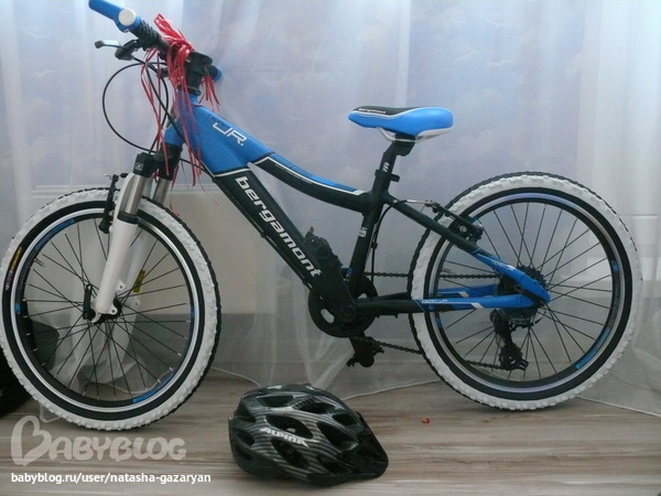 20 дюймов, легкий, красивый, немецкий, 7 скоростей, переключатели и всякие примочки Shimano, шины тоже какие-то навороченные, 2 ручных тормоза, амортизаторы, у него седло только в трех плоскостях подгонятся под велосипедиста! ))) в общем - красота!!!! ну и шлем, конечно же, Alpina - Made in Germany!!!