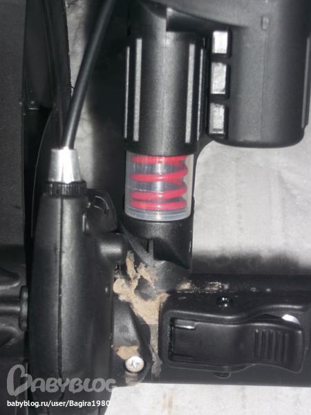 У Боба более сложный механиз амортизаторов-закрытый шток, как у гоночных амортиках фирмы Каяба.. Установлен на сиденье. На видео можете посмотреть как четко отрабатывает себя система, при движении. У Роберта она еще и регулируется жестко-мягко, но это нужно исключительно для бега.
