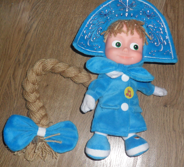 10. Маша Снегурочка. 650 руб.АШАН.Любимая игрушка!!!!!!!Говорит несколько фраз из мультика.Сарафан и корона-из мягкой ткани,приятная на ощупь.Тело у куклы мягкое.