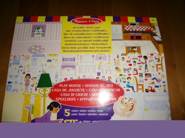 те наклейки что есть у нас, там 5 страниц с разными наклеечками и 5 страниц с изображением разных комнат. наклейки можно переклеивать много раз...Кристина пока не очень понимает, но я ей показываю куда клеить и ей нравится)))