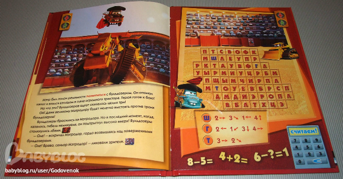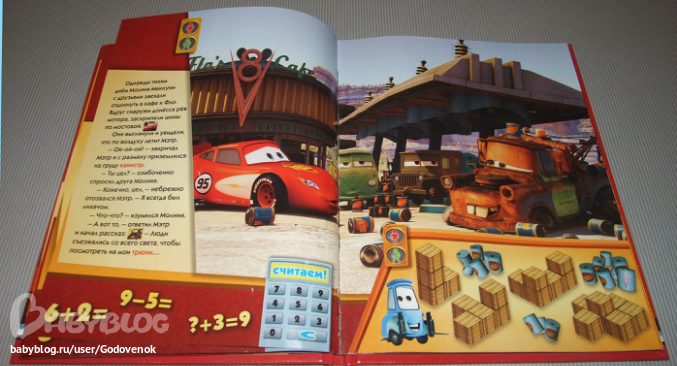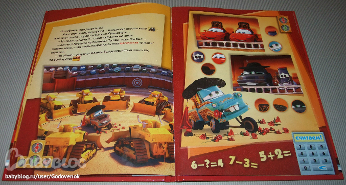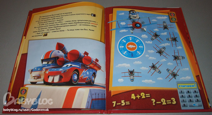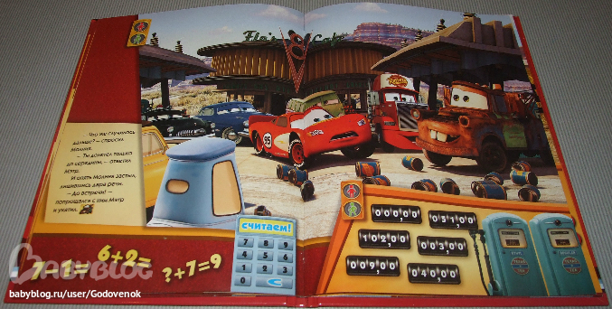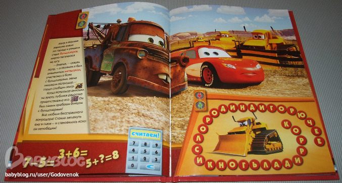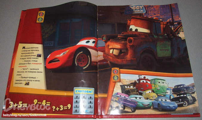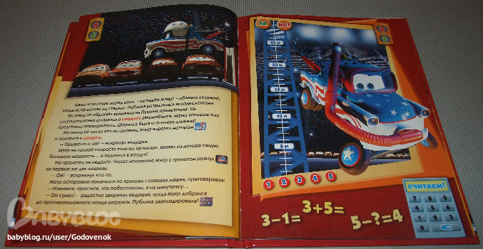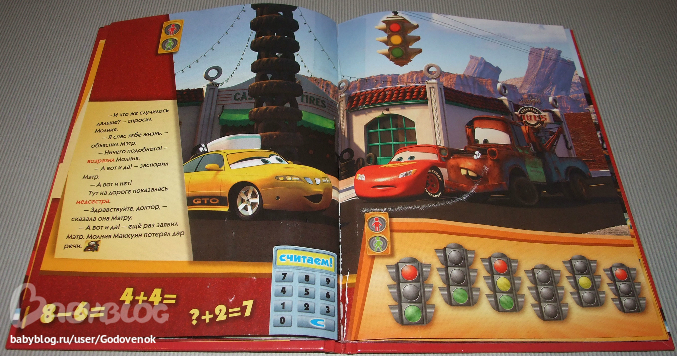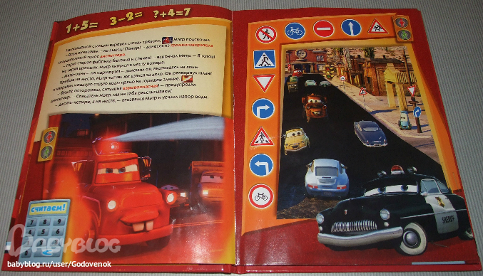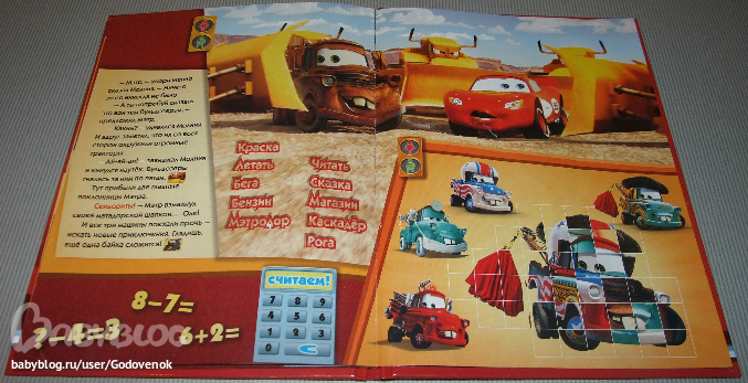 Чтобы переключиться в режим заданий нужно коснуться ручкой зеленого сигнала нарисованного светофора. Одно из заданий – математическое, на сложение и вычитание. Другие задания разные на каждом развороте, разной сложности – есть и очень простые, и достаточно сложные – на любой возраст. Например, показать, где у машины колеса или фара сможет самый маленький ребенок. А чтобы выполнить задание «найти буквы, из которых состоит слово… » нужно как минимум уметь читать.