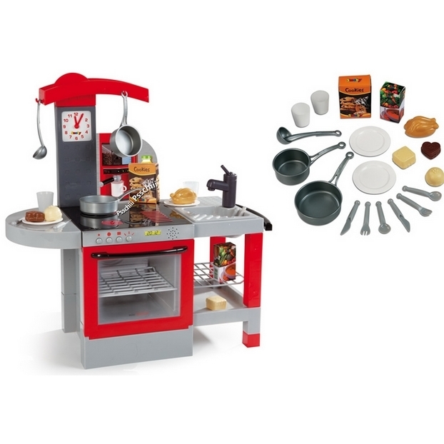 Мы дарили такую, только в исполнении Хелло Китти. Ребенку понравилось. В духовке есть подстветка, конфорки,если на них что-то поставить, издают звук кипения воды и жарки. Кухня сама не очень большая. Ребенок играет с ней уже 2 года. Интерес не пропал