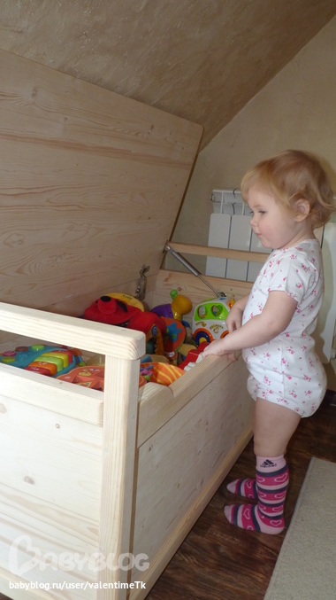 Игрушкиначну с того, что я избороздила интернет простор в поисках ящика для игрушек, который бы мне нравился, и в россии ничего ненашла...(((( понравился только ящик от КидсКрафт, но у нас их практически не представленно. Решено было делать ящик на заказ -ждали долго-4 мес, но результатом более чем довольна!