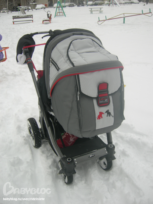 Спальное место огромное, правда, дочка долго привыкала к не гамаку, потом приноровилась. Ведь там она, как королева даже в пуховике и конверте.