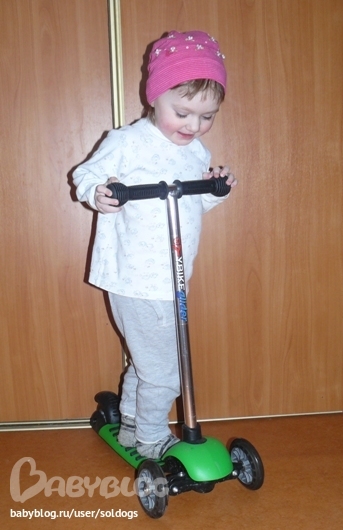 Сравнить с другими не могу,других никаких не было.В одной темке советовали взять макси микро на наш рост. Но как то совсем мне не хотелось его брать,это просто бзик ,не претензии.И вот вчера уже обкатали.Я очень довольна.И хорошо что не стала брать макси в плане роста.При наших 94см у него ещё запас очень приличный.Оценили широкую подножку,очень удобно-ребёнок встал обоими ногами,я же просто подталкивала в спину,наклоняя чуток при поворотах самого ребёнка.Очень устойчивый,ход мягкий,прям плывёт.Самокат лёгкий,мои весы показали 2,4.Высота ручки от пола 67 см