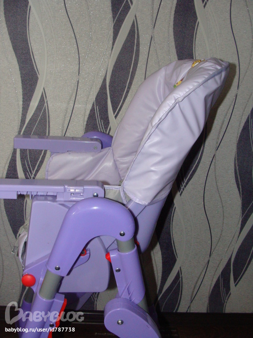 Спинка откидывается на 120гр, что довольно удобно, учитывая что стул мы взяли когда нам еще 4х месяцев не было. Всего позиций 3, механизм после месяца использования начал заедать.