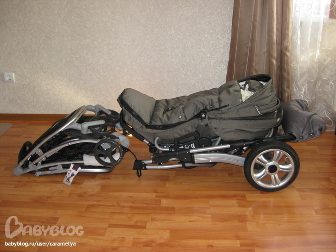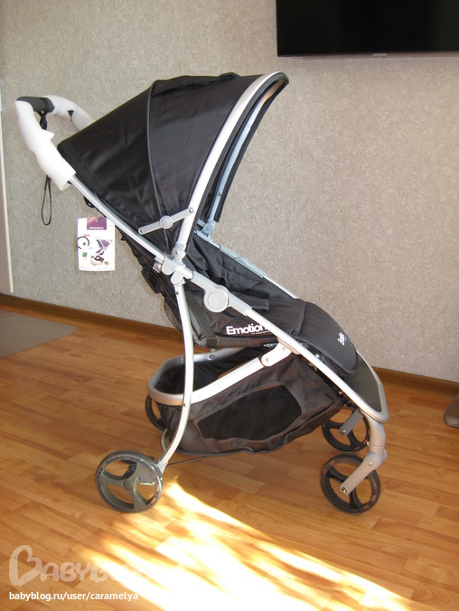 Ну очень она мне понравилась. Стильная, ткань качественная, фурнитура отличная, колясочка крепенькая, ничего нигде не люфтит. Покатала пока только дома, едет очень легко, маневренная. Хороший наклон спинки в лежачем положении. Тормоз педалькой, обувь не портит. Корзина достаточно вместительная, есть небольшой дополнительный кармашек на спинке. Кап маловат, но прекрасно подошел летний козырек от Гесса, так что эта проблема решена.