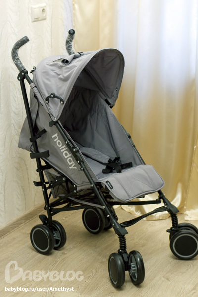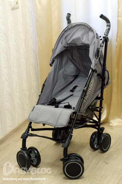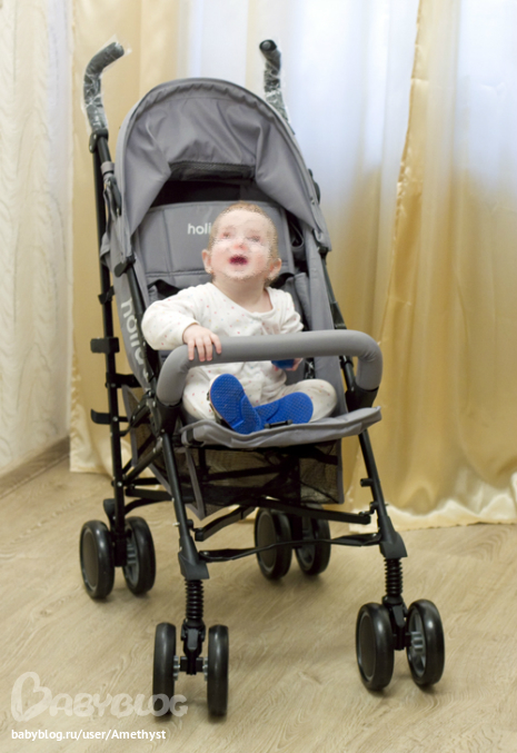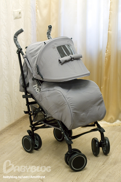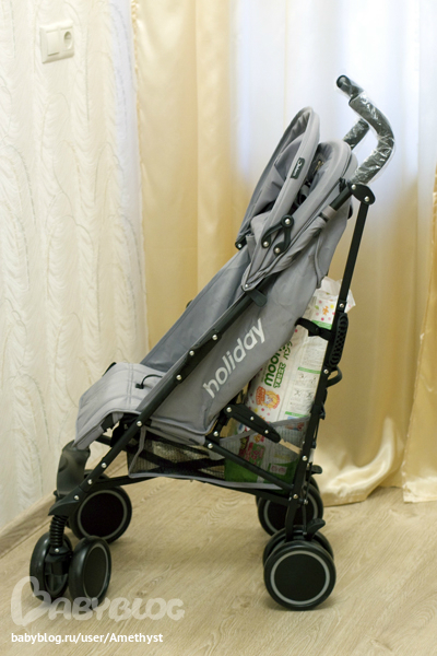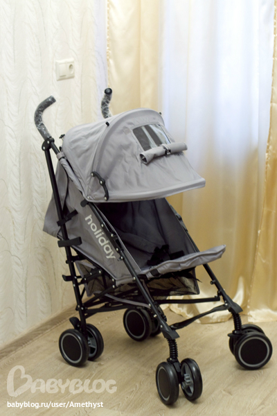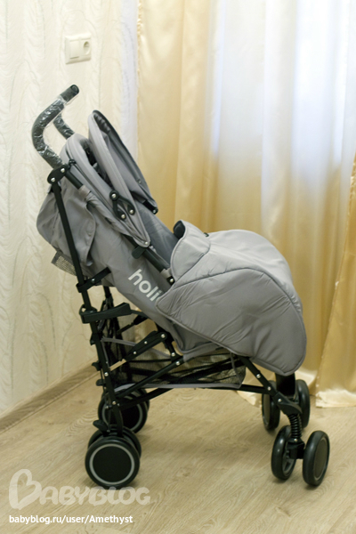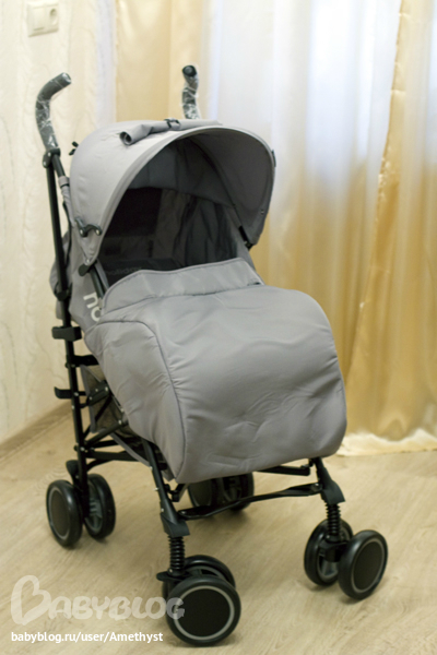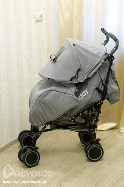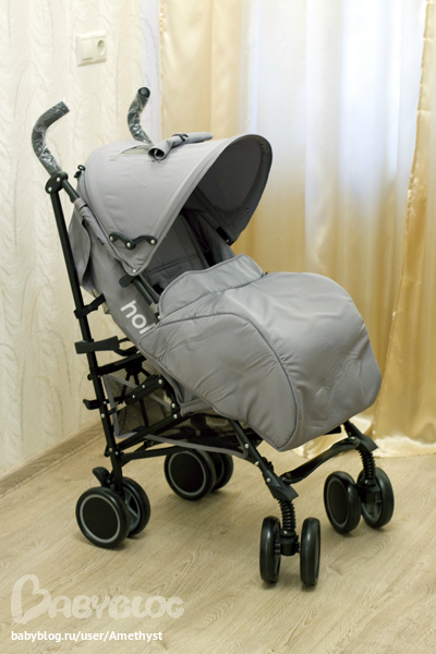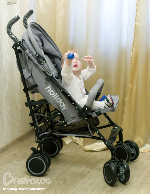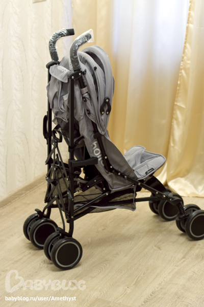 Коляску я покупала исходя из низкой цены (2700), потому что использовать планирую на отдыхе и дорогую трость нет смысла покупать. Из плюсов для меня большой кап, бампер, приятный плюс наличие накидки, кармашков сзади. Про ходовые качества добавлю отзыв ближе к лету, сейчас гуляем на большой прогулке.