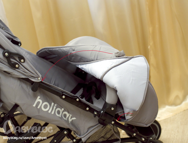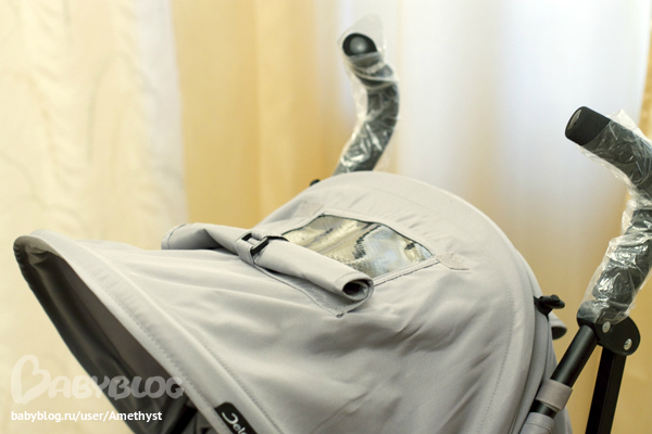 На капюшоне есть смотровое окошко, в промежуточном положении я вижу ноги ребенка.