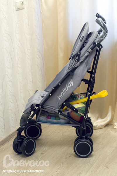 И еще добавлю! Свою функцию в отпуске коляска выполнила отлично, но сейчас ребенок весит 14 кг и рост 92 см. Управлять стало тяжелее, с этой коляской хожу редко, так как есть другая. Но изредка выбираюсь в детский клуб. Проблема роста все еще актуальна, я задеваю ногами колеса и везу ее на вытянутых руках. Измерила высоту ручек - 104 см от пола, оказывается, что не самая низкая коляска. Выше только трости с выдвижными ручками.Из плюсов: вместительная (для трости) корзина. На ручки можно вешать сумки и пакеты, она не перевернется. По ступенькам шагает отлично. Устойчивая - дочка сама залезает на нее. Удачная высота бампера и его надежность (у меня литой без сегментов, может старая модель?).