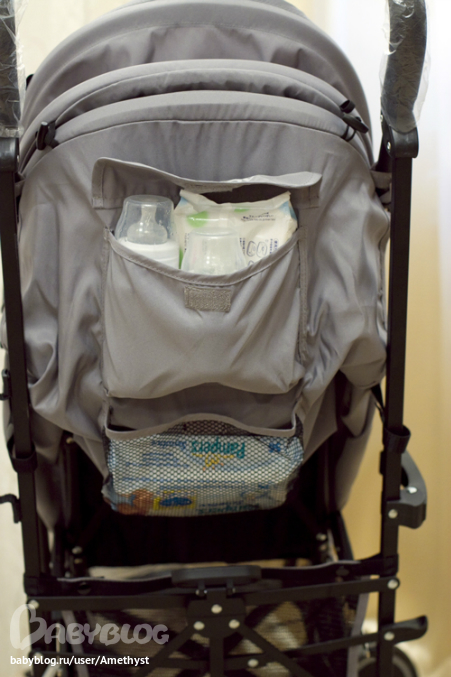 Сзади коляске есть два кармана, достаточных для повседневных мелочей: