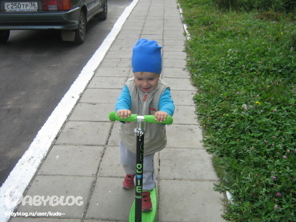 А у меня сын что-то не оценил самокат, купила прошлым летом , когда ему было 2 года мини-микро, так до этой весны и лежит, сколько раз на улицу брала, встанет постоит , один раз ногой оттолкнется и побежит по своим делам, вот на днях достала его, пошли гулять и на удивление проехался на нем, думала СОЗРЕЛ. Ан-нет... на следующий день я так и протаскала его на себе( в смысле-самокат). Вот теперь, думаю, беговел купить, вроде на велики он с интересом смотрит.