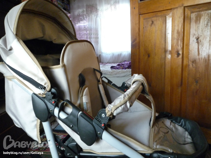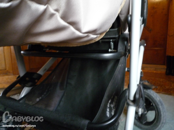 Можно установить подножку вровень с сиденьем - это удобно, когда малыш еще маленький, или спит - ножки не свисают и не затекают в согнутом положении.