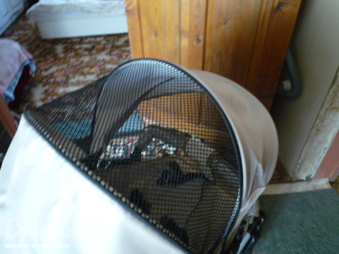 Капюшон за счет этого становится просто необъятным, очень глубоким, закрывает ребенка полностью от палящего солнышка, но вместе с тем коляска и вентилируется! На юге это просто супер находка. Ни на какой другой коляске капюшон так здорово не закрывал моих деток от солнышка. Капюшон можно опустить еще ниже, чем на фото, до самого бампера.