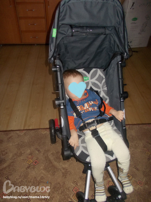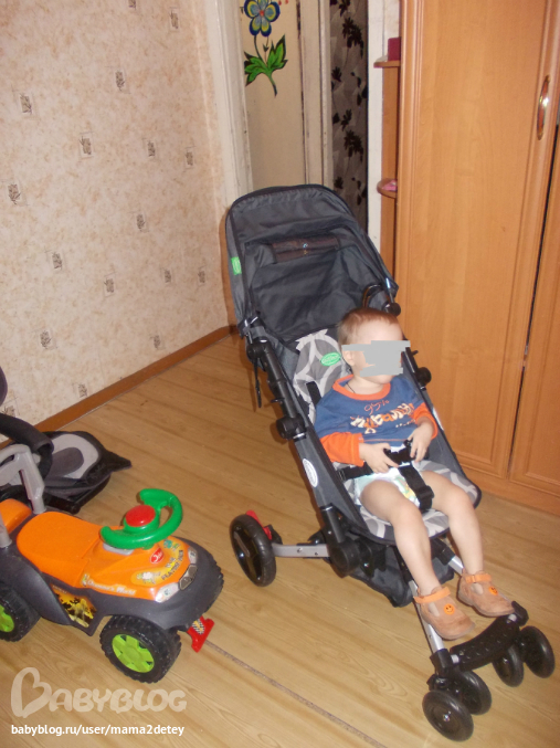 После полезных комментов хочу отметить, что коляска подходит для детей постарше, так как сидушка у неё глубокая, для роста 80-85 см минимум (либо когда совсем малыш, месяцев 6-7 и ноги только-только на ней), спинка короткая и опускается на чуть-чуть, то есть не подходит для постоянного сна, подножка для роста минимум 85 см (мы 80 примерно, ноги стоят на железке, с ростом меньше - будут висеть).