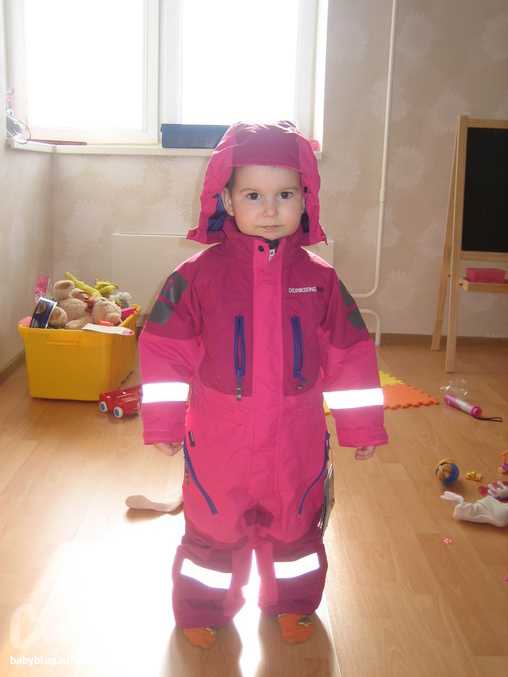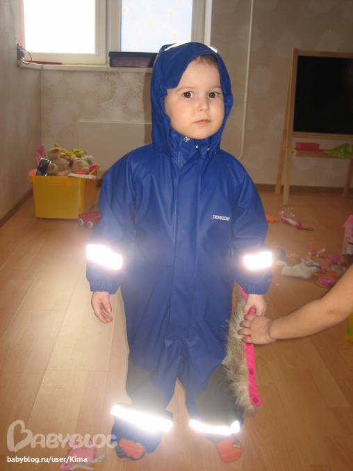 Didriksons килиманджаро. Весь такой функционально-навороченный)) Думаю, мы его сейчас наденем. Смешной капюшон у него.