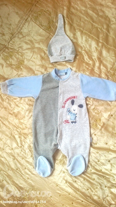 комбинезон Carter's, очень приятный на ощупь) написано, что на 6 месяцев, но нам в свои 3 месяца он как раз)