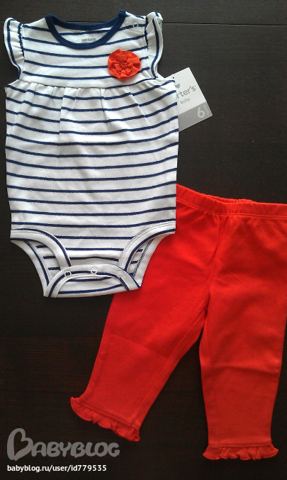 какая красотень ,очень онраивлся комплект боди в полосочку и красные штнишки))) да и вобще все класс)) я люблю картерс)