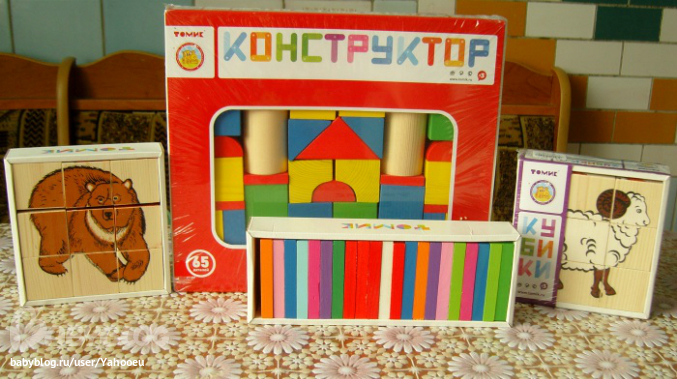 ИгрушкиИзвестно, что игры с кубиками развивают у ребенка пространственное и логическое мышление, координацию, воображение и мелкую моторику рук.Мне нравится качество кубиков Томик, они хорошо обработаны, без зазубрин,а запах дерева просто умопомрачительный!