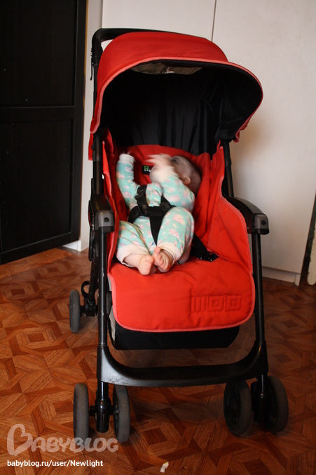 +Коляска для ребенка, кот. уже ходит, в нее удобно забираться, благодаря зафиксированной подножке, и вылезать