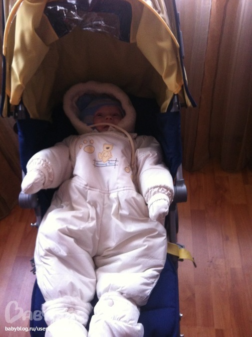 далее сомнения возникли,как там можно возить полуторогодовалого малыша, даже не крупного, вот мой в зимнем комбезе, ростом 71см, комбез свободного фасона,но все же нам только 6мес, время либо сотрет мои терзания,либо они перейдут в разряд основательных недостатков для нас.