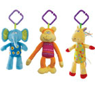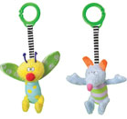 Вот еще несколько подвесок, которые дочке тоже очень нравились. 1. Коровка "ЕЛС"(не знаю чем но доча ее очень любила), 2. гусеница "тини лав" гремит и трясется если потянуть, 3. гусеница "фишер праис" - замечательная вещь! играет и грызет до сих пор, еще у нее тканевые лапки дочке очень нравится перебирать их, 4.и 5. желтая бабочка с первойи желтая лошадь со второй фото-"таф тоис" тоже хорошие подвески бабочка звучит как колокольчик и крылышки у нее шуршат, а у лошади если нажимать на нее несколько мелодий проигрывается.