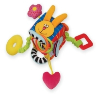 6. Подвески. Первый кубик "Таф тоис" очень дочка его любила там много различных сторон и с шуршалками и с пищалкой и с прорезывателем и с колечками. Мы его вешали на коврик и в коляску и всюду таскали с собой с 3 до 7-8 месяцев. Весь практически до дыр затаскали)).