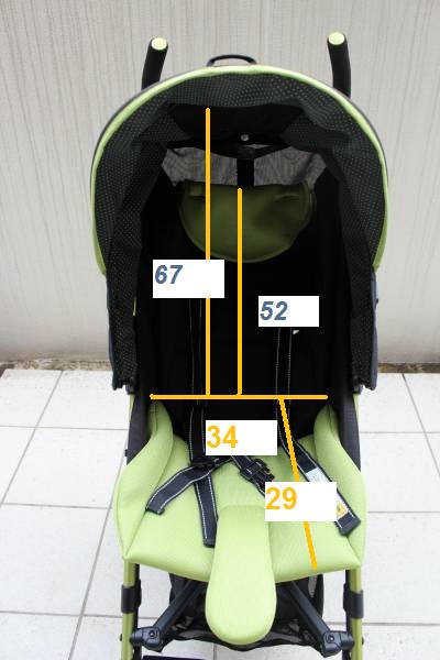 Karoon Глубина сиденья- 25 (с 28-29 выдвинутой подножкой), ширина в попе- 27, под коленками - 32, спинка- 46, в плечах - 27; спасльное место где-то 65 см с поднятым бортиком, ручка от пола 97 см. Покупали в 5мес. Сейчас ребенку 1,4- ноги давно стоят на подножке. Можно продолжать ездить с ней в ТЦ сидя. Но положить нельзя из-за системы разложения спинки. Спрашивайте.