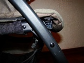 Тормоза на задних колесах фиксируются по отдельности. Поперечная планка тормоза должна войти в пазик. А это еще нужно суметь сделать! Стопы нужно поддевать носком. Я делала это рукой, но стопы часто в пыли.