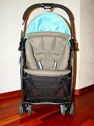 Корзина крепится к коляске на кнопках и имеет жесткое ребро, проходящее посередине днища. Оно препятствует оттягиванию корзины вниз под весом положенных вещей. Входит пятилитровая бутылка с водой.