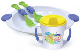 А я обычный купила в аптеке! Фирму не запомнила! Купила наборт тарелочку, ложку и поильник!!! Стоимость была 200 руб..