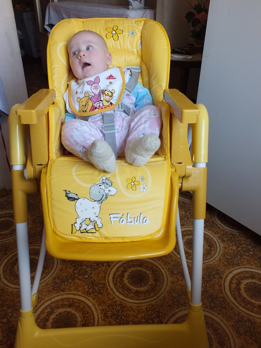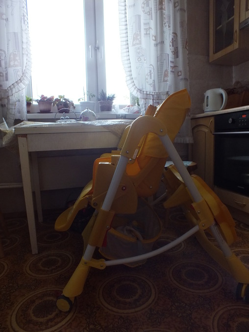 Этот стул не для маленьких кухонь, под наш советский стол точно не заедет, сидение широкое, туговато растёгивается ремень безопасности(зато точно сам ребёнок никогда не растегнёт), нет наплечников, ну и летом надо будет что-то подстилать, а то дитю будет жарко, качество пластика соответствует цене, очень нравятся прорезиненые колёса.
