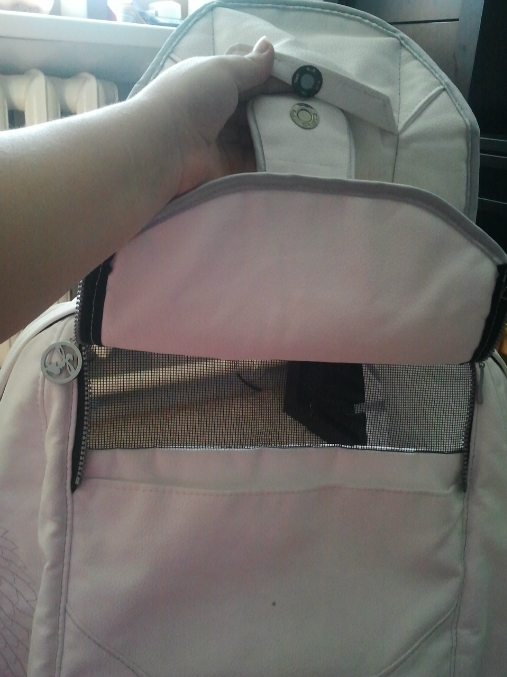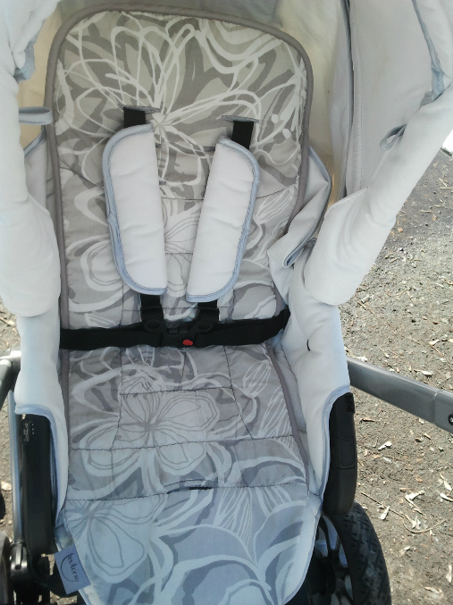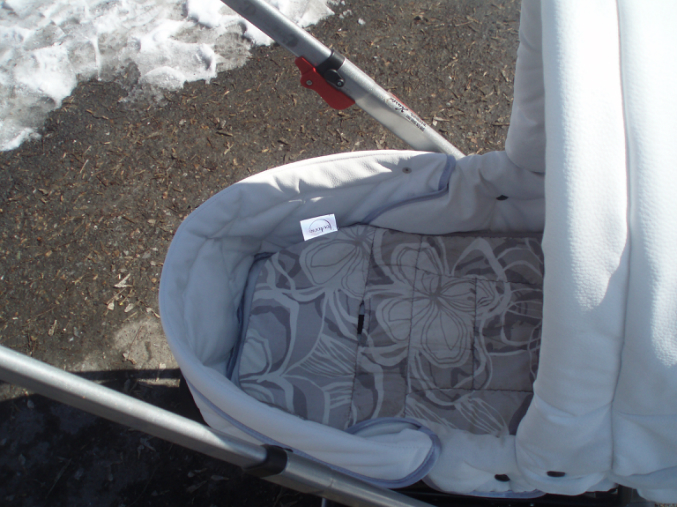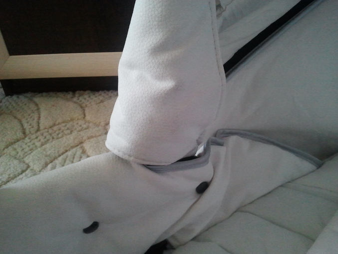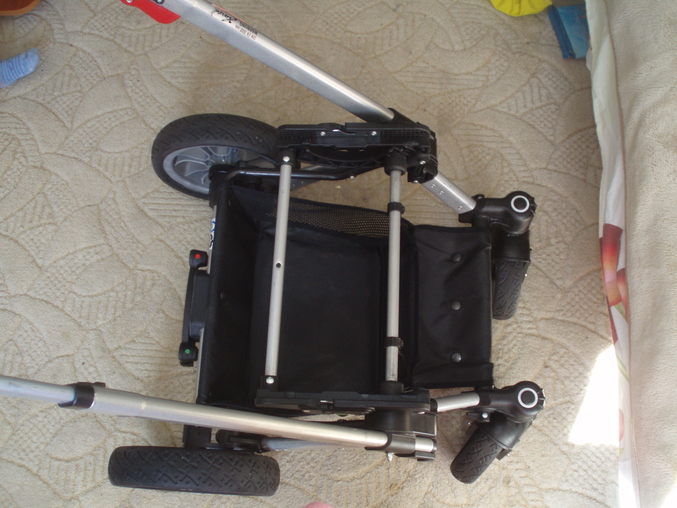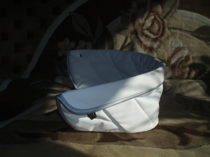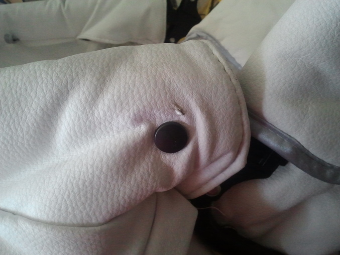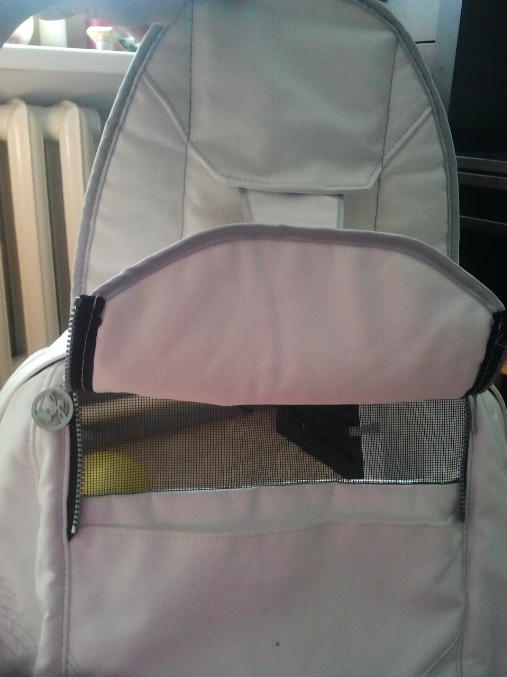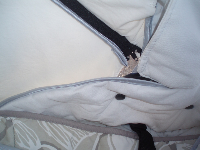 - пошеркались некоторые места (посерели) (как я говорила выше это верхушка капа, крышка переноски, боковушки около сиденья (фото)) конечно, очень плохо видно, а в жзни на улице, поверте мне, вообще незаметно, но все же неприятно...