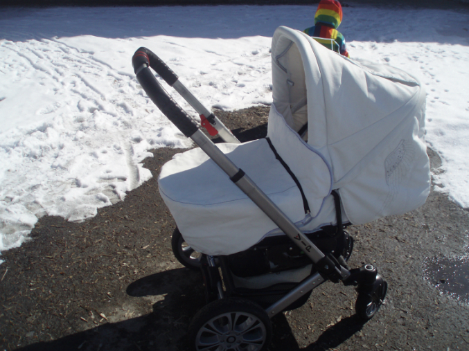 Но, не смотря на то, что колеса не надувные (что, лично меня смущало), амортизация себя оправдала. Не говоря уже о маневренности коляски, как говорят «управлять можно одним мизинцем», после неповоротной люльки даже пугала такая маневренность ))) Еще у Хартанов есть функция регулировки жесткости амортизации, но этой функцией я ни разу не воспользовалась. Несколько раз пригодилась фиксация поворотных колес, но это только при самых больших препятствиях, типо сугробов из рыхлого снега или каши из того же снега при таянии.
