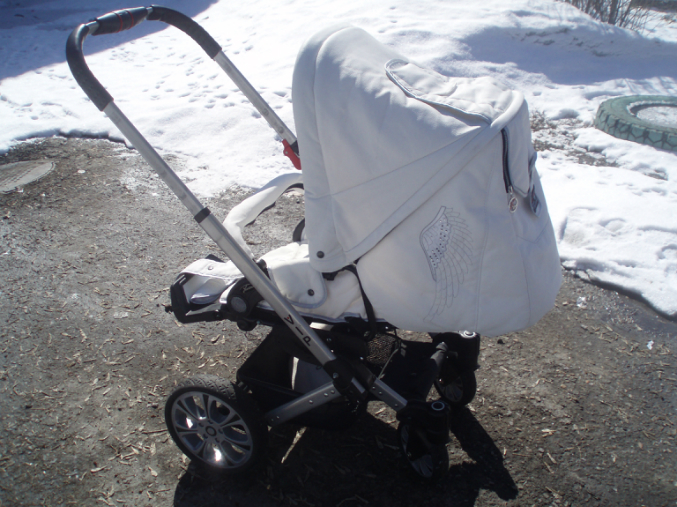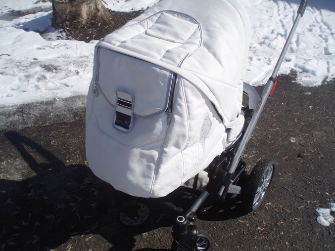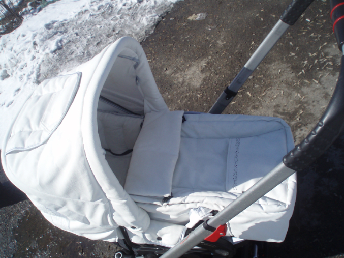 Красоту коляски я решила воплотить в белом цвете и материале. Все же приятно, когда на вашу колясочку оборачиваются ))) не знаю как вам, а мне приятно ))) Скажу сразу, я не жалела ни одной секунды ни о цвете, ни о материале. По-моему, я её даже стирала не чаще чем моя соседка текстиль своего польского трансформера. (это при том, что я не чушка какая-то и с грязной коляской на улицу не выеду ;) ) веду я к тому, что цвет нуждается в стирке не чаще, чем другие цвета, за счёт материала, но при этом ВСЕГДА в кармашке коляски должны быть влажные салфетки. Конечно, по уходу можно было и больше уделить внимания, например, прикупить пропитку и крем… но чисто моё мнение – за полтора года активной эксплуатации – я не «уделала» коляску. Бесспорно, на ней есть потертости на уязвимых местах, таких как: