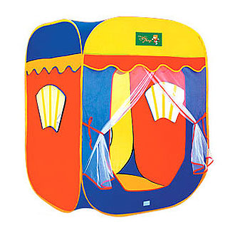 У нас пиратский домик.Очень нравится.Из плюсов- высокий купол-при необходимости я могу туда залезть и прибрать-убрать,вместе играть.Легко складывается..и прикольная)