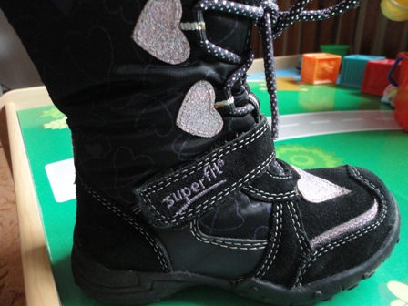 Это наши ботики... что сказать.. мне они очень нравятся внешне.. НО... в эту зиму ножки промокали( !!! ), хотя до этого покупала суперфит короткие ботиночки зима, в лужах жили, не промокали! Поэтому с уверенностью взяла эти, НО мокнут! Ножки холодные (((( и мокнут при слякоти((( я расстроена.. хотя тоже думала может не так носим, слишком большой запас и тп. Что может ножка потеет или что.... мы носим на колготы с синтетикой или термоносок... но специально поглядела после прогулок по мокрому снегу влажно внутри даже на след утро после прогулки... пот бы высох, я так думаю, за неск часов, а тут прямо как промокшие... я не говорила бы что это плохая обувь, всегда она мне нравилась, но в этот раз я недоумеваю, почему так.... на след зиму взяла ВИКинги.. их мы еще не тестировали...