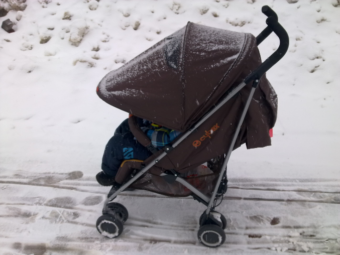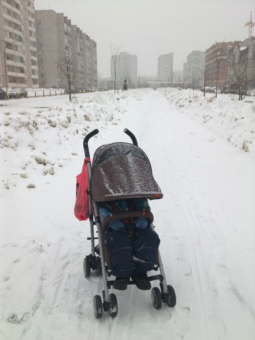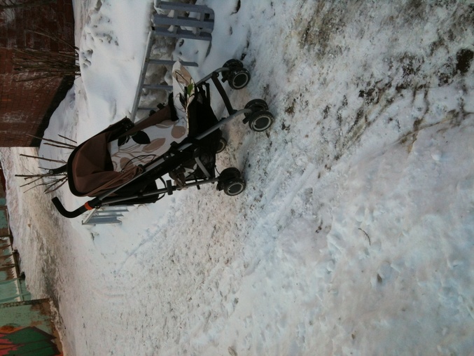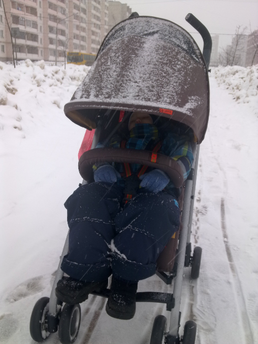 Выставка наших колясок (только хвасты)Сегодня в силу определенных обстоятельств пришлось договориться с сыном, чтобы днем поспал в коляске, по дороге в гости. А в коляске не спал уже 2 месяца, да и коляс у нас новый, лишь однажды опробованный на улице. Целый день снегопад.. Но я же отчаянная мать! Колеса зафиксировала, капюшон наш великолепный опустила- и вперед! Сын благополучно уснул в автобусе; одним движением руки опустила ему спинку до почти лежачего положения, а через полчаса сошла и еще прогулялась по заснеженным дорожкам... Колеса практически бесшумные, по мокрому снегу ехали вполне хорошо! А благодаря чудо-капюшону ни снег, ни ветер не страшны!Так что и для "зимней" весны наш Оникс годится! Ниже фото.