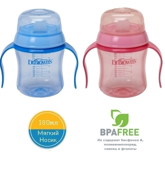 Поильник с мягким носиком. У нас доктор Браунс, как у вас на фото, нам нравится. Приборы нормальные. А тарелочка мне очень понравилась с подогревом от Чикко. Туда внутрь вода наливается горячая и пища не остывает - когда ребенка по полчаса кормишь, это очень актуально))
