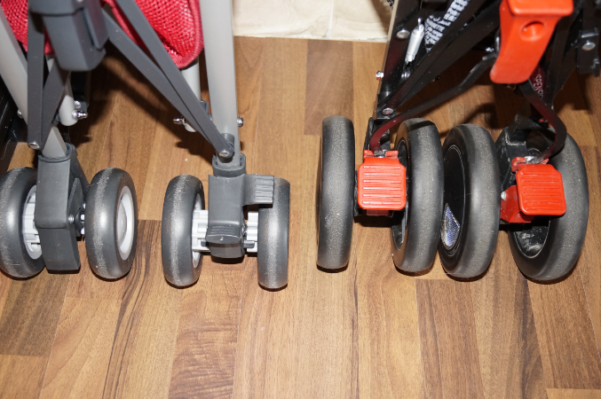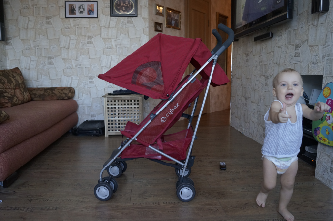 На фото по размерам сравниваю с маком ХТ,высота ручек у них одинаковая,да и капы вроде на одном уровне.Но руби все-равно меньше и уже. Кстати руби тяжелее Volo,сегодня взвесила 6 кг веса. Там где сын с собакой сидит это второе положение спинки,на поспать нормально,тем более он в воло спал.А там где я с коляской,это я сфоткала для того чтоб вы понимали где ручки,я мелкая,рост 160 см,мне удобно)) Муж 185 ему тоже удобно). В целом коляска мне понравилась,сделана очень качественно,в сравнении с воло она более функциональна,один только кап чего стоит! Лучше чем на маке ХТ,так как на ХТ когда открываешь доп кап он никак не держится и при малейшем дуновении ветерка закрывается,а этот фиксируется и отлично держится.Еще понравились тормоза:система заднего тормоза активируется легким нажатием на педаль,удобнее на него ставить,на воло на мой взгляд дурацкий,рычажная система.Ну и один из больших минусов воло-это ее неустойчивость,повесив свою сумку на ручку,когда в коляске нет ребенка она падает,а на руби я повесила свою сумку и пакет(без ребенка) и она стояла! А! еще плюс руби: сидушка легко снимается и ее можно постирать,в воло не снимается.Ну и кап у руби растет с ребенком,двигается по раме вверх-вниз.еще у воло передние колеса не фиксируются(я на своем воло так и не нашла фиксатор),а у сайбекса есть ) за пределы дома еще не вывозили коляску,на днях поедем в какой-нибудь ТК и потестим))