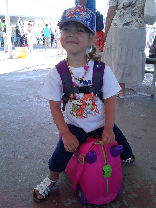 Тоже смотрела на такой чемодан, но не решилась купить. Полгода назад ездили отдыхать, так она на руках все время просидела, а чемодан сдали сразу. Думаю, что пока он ей и не нужен и не интересен. Хотя очень красивый.