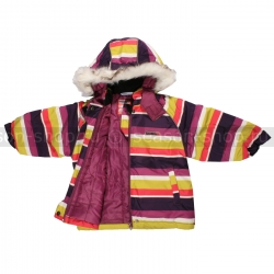 - Куртка с отстегивающимся капюшоном на меху, застежкой на молнии и ветрозащитным клапаном.