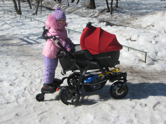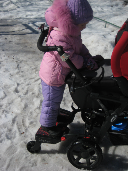 На ппротяжении месяца, с момента рождения второго малыша, я думала нужна ли она нам или нет и решила всетаки приобрести ее! Разница между детками у нас 2 года 8 мес. Подножку купили в основном не из-за того, что дочка уставала долго ходить, а из-за того, что как и большинство деток ее возраста, она не может ходить в ровень с шагом взрослого. Случалось так, что младший просыпался на улице, начинал нещадно кричать, ты начинаешь максимально быстро идти в сторону дома, а старшая вроде как и идет, но ооооочень медленно, постоянно отвлекаясь на что-то.