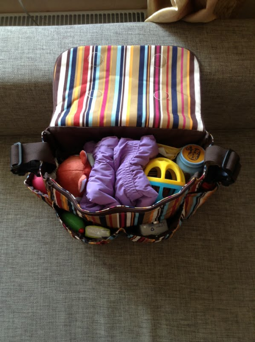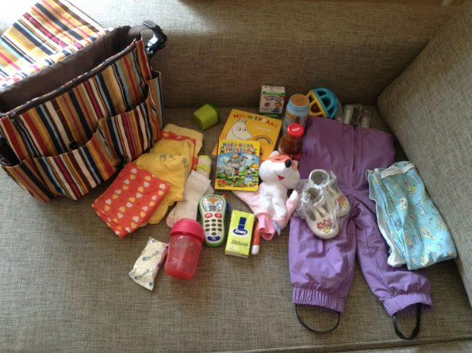 Мы как раз собирались на день к бабушке, поэтому фотографирую набитую сумку и содержимое. Фото наверху -тоже уже набитая.